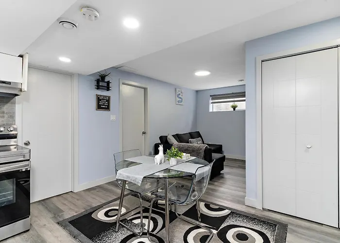 Sumérgete en la agradable experiencia que ofrece Cozy Cove, una moderna suite privada situada en un ambiente acogedor que combina confort y encanto. Aunque esté cerca del aeropuerto, disfrutarás de la tranquilidad mientras saboreas la cercanía, a tan solo 18 minutos del famoso West Edmonton Mall. Aquí, la atención al detalle se refleja en cada rincón, creando un espacio ideal para relajarte después de un día de exploración. Las habitaciones son un refugio de paz, con una decoración contemporánea que invita al descanso. La suite moderna cuenta con cómodas camas y un ambiente acogedor, asegurando que tu estancia sea memorable. Además, el acceso a WiFi y Netflix te ofrece la oportunidad de disfrutar de tus series y películas favoritas en un entorno privado e íntimo.